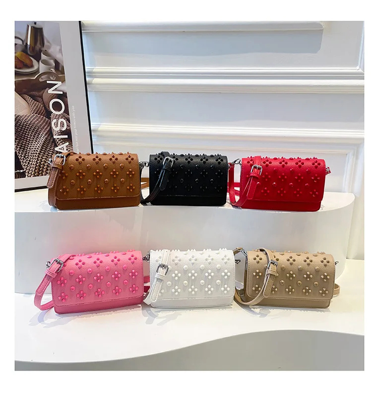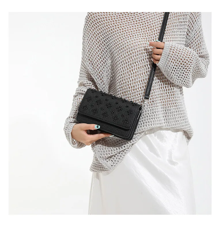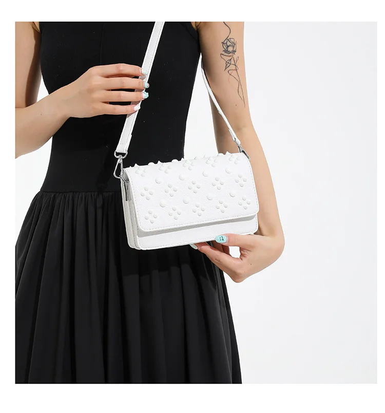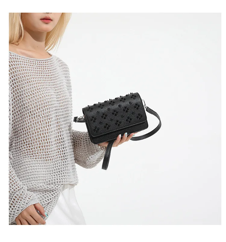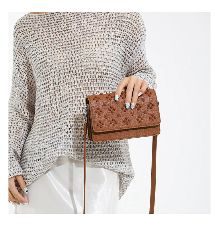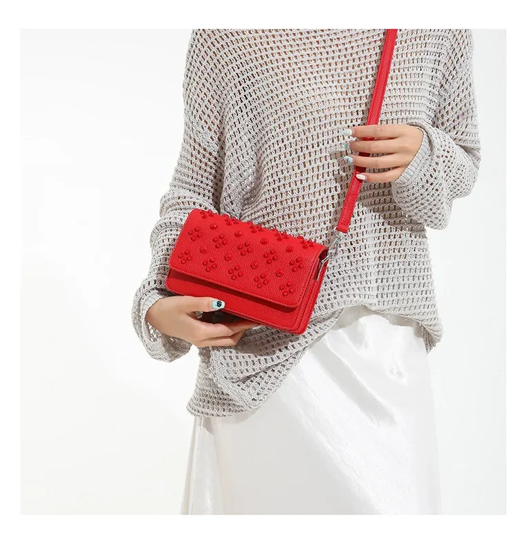 High-end small handbag with a textured lychee pattern and rivet details. Stylish, compact, and perfect for everyday wear or special outings.