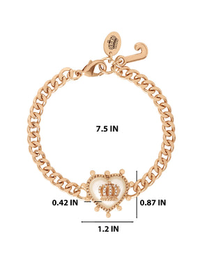- đ Signature Juicy Couture Design: Iconic gold-tone heart bracelet featuring the smooth J logo charm alongside a crystal-embellished heart charm or pendant â the perfect dash of bling for day or night.