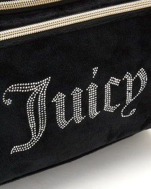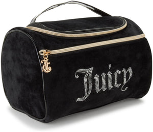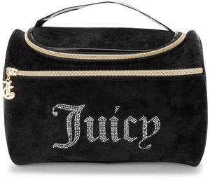 Juicy Couture Velour Makeup Bag | Rhinestone Travel Cosmetics Organizer | Black & Pink