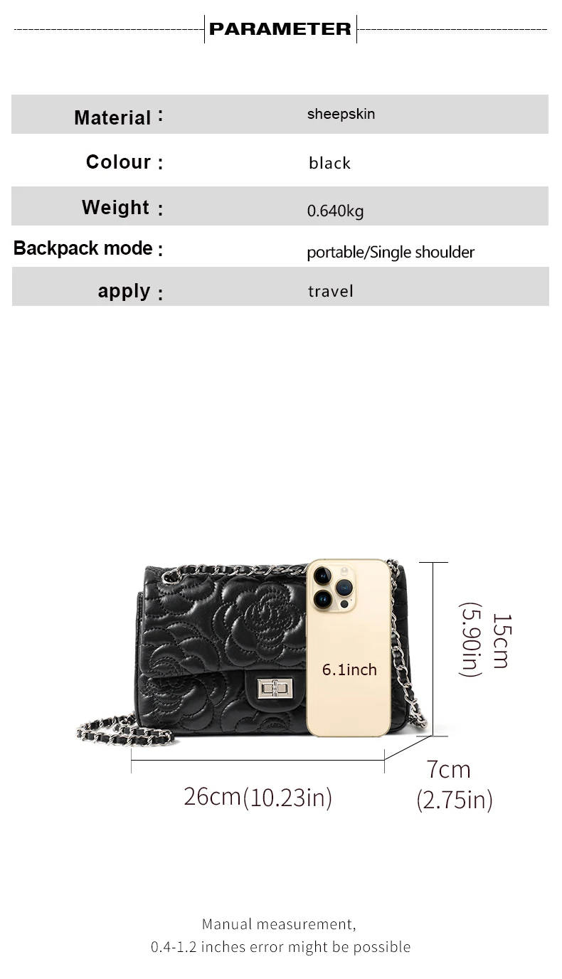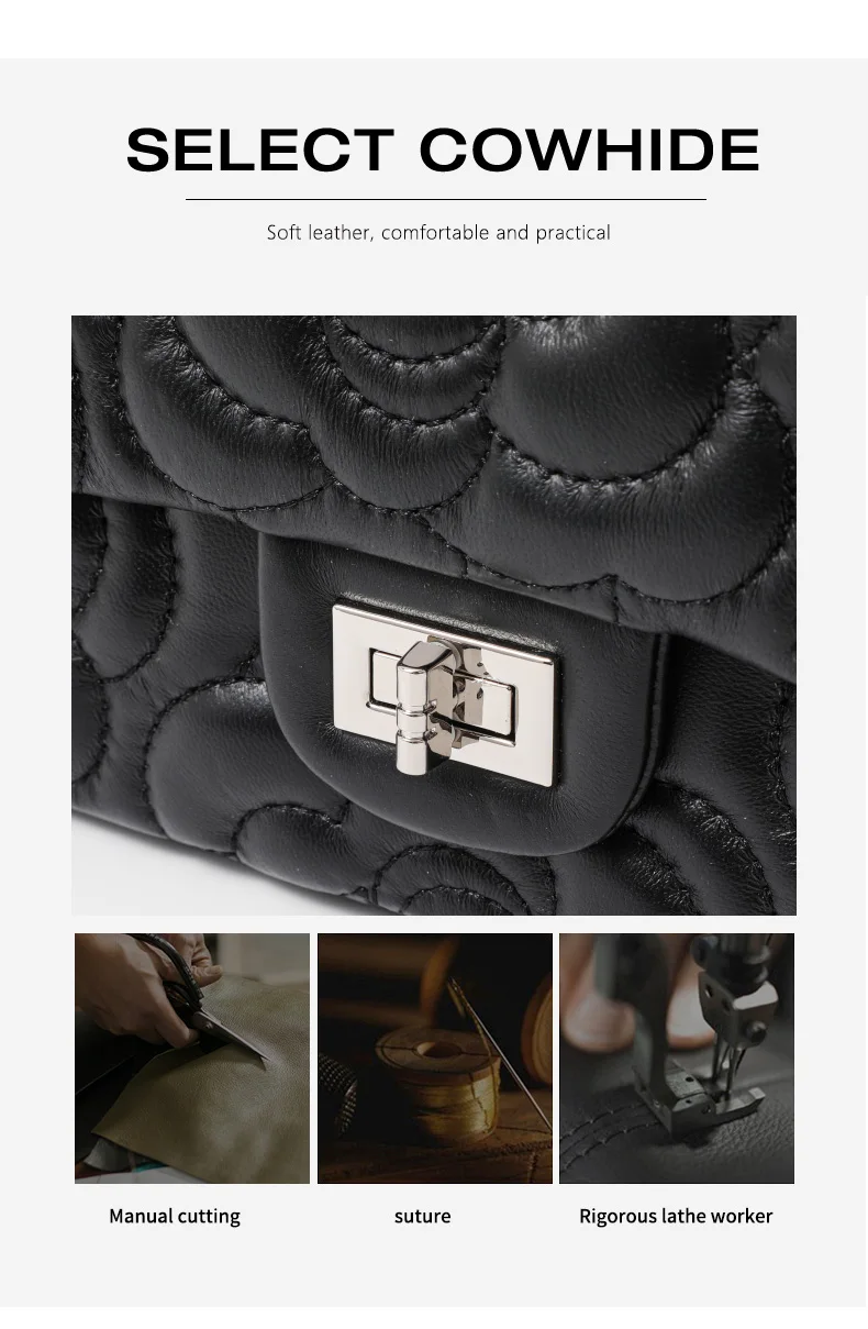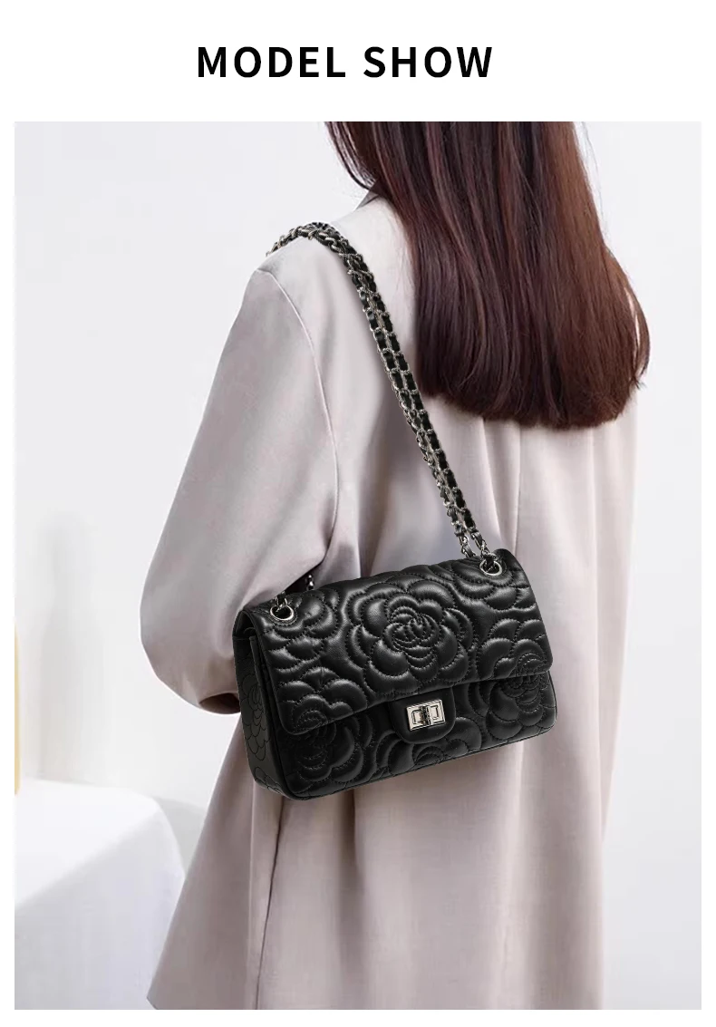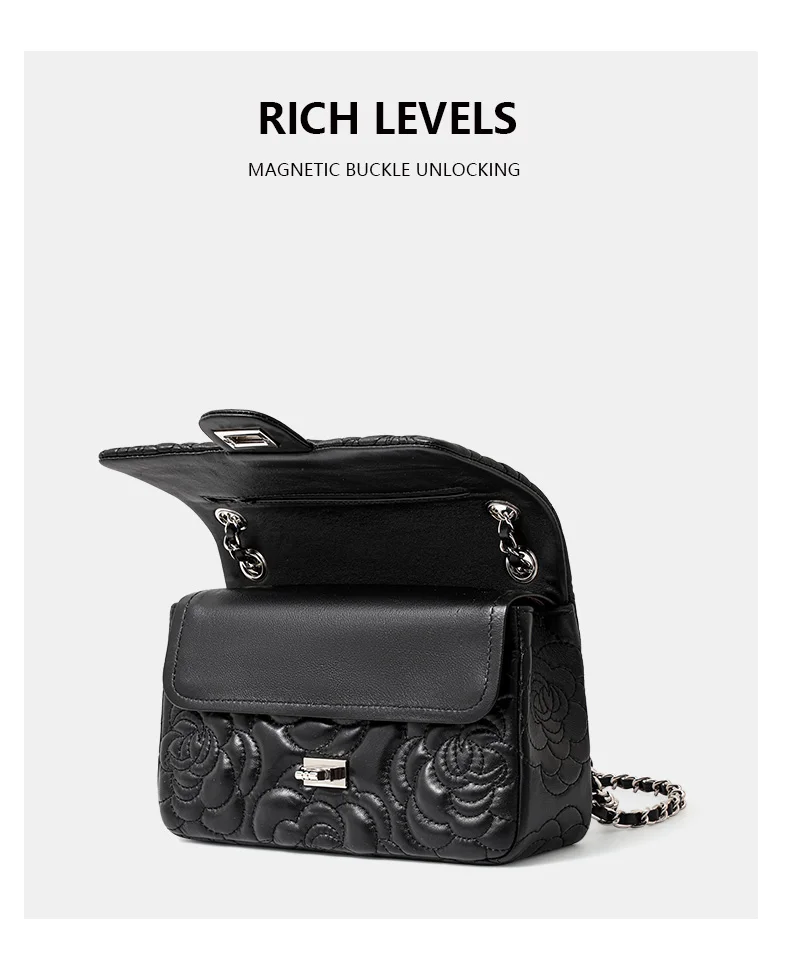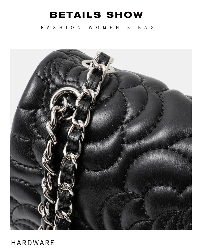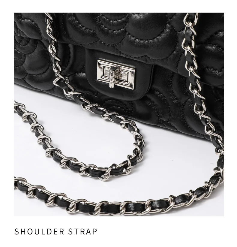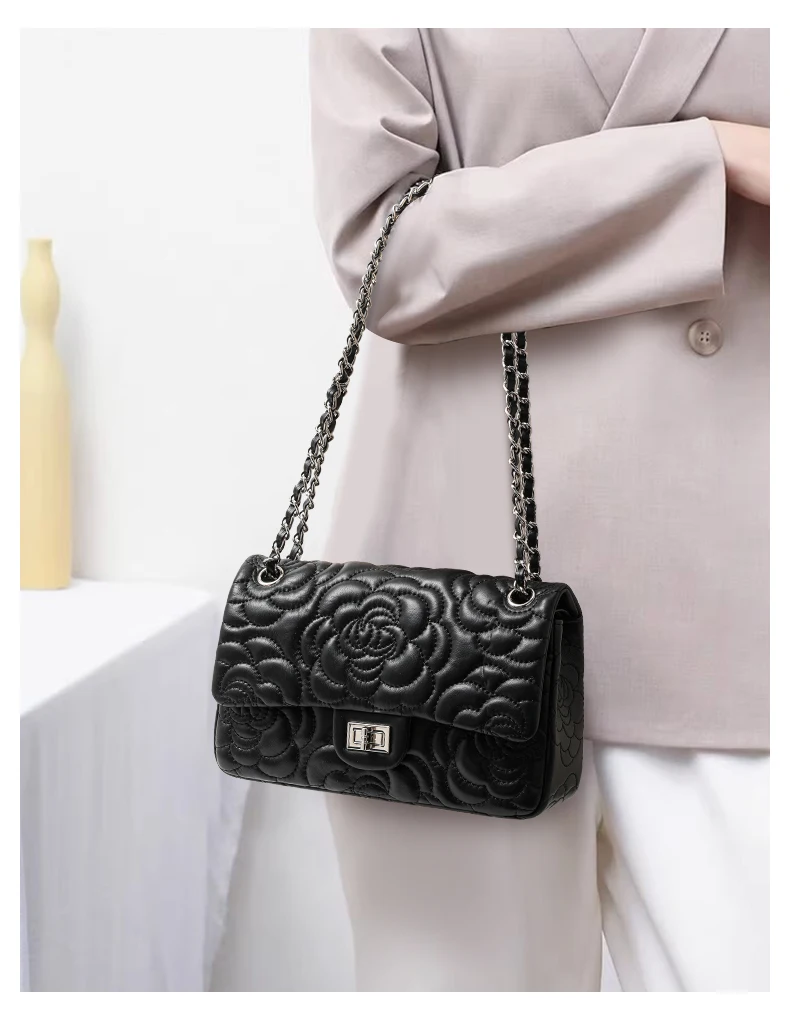 Women's Leather Camellia Chain Shoulder Messenger Bag