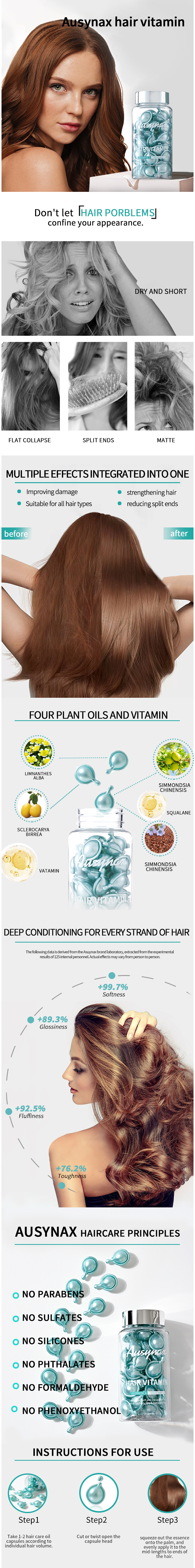 Transform your hair care routine effortlessly! ✨ What it is - The Ausynax Hair Treatment Serum is your solution for perfect styling and frizz control. Each capsule contains a nourishing blend of Jojoba Oils and vitamins to keep your hair shiny, smooth, and healthy without any rinsing needed. 💖 Why you need it - - Tames frizz and adds shine to all hair types (straight, wavy, curly, dyed) - Simplifies hair care routine—just apply, style, and go! - Packed with vitamins to support hair repair and nourishment - Ideal for anyone seeking that salon-finish look at home 🌟 Why you love it - - Convenient capsules make it easy to use without mess - Formulated for every occasion, whether it be a special event or everyday elegance - Great for both men and women looking to improve their hair health and style To use, simply apply the serum from one capsule to freshly washed hair, then style or dry as desired. No rinse required! Experience the difference with our premium hair treatment—your satisfaction is guaranteed. Get ready to shine and show off your gorgeous locks!